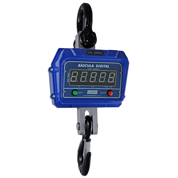 -Pantalla digital de alta luminosidad. Alarma de sobrecarga. Control remoto con 4 teclas. Batería de 6V. Incluye 1-Cargador, Baterías. Control Remoto. Capacidad de 3000Kg. Escala de 500 gramos.