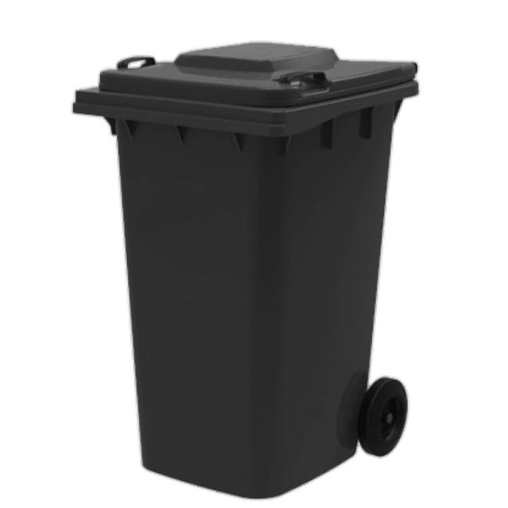 -Capacidad de 240 litros, ruedas para traslado, pedal para levantamiento de la tapa, material resistente. «imagen ilustrada frontal»