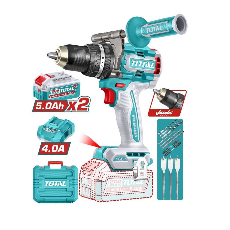 Taladro percutor a bateria 13mm 20v BL 166Nm Total